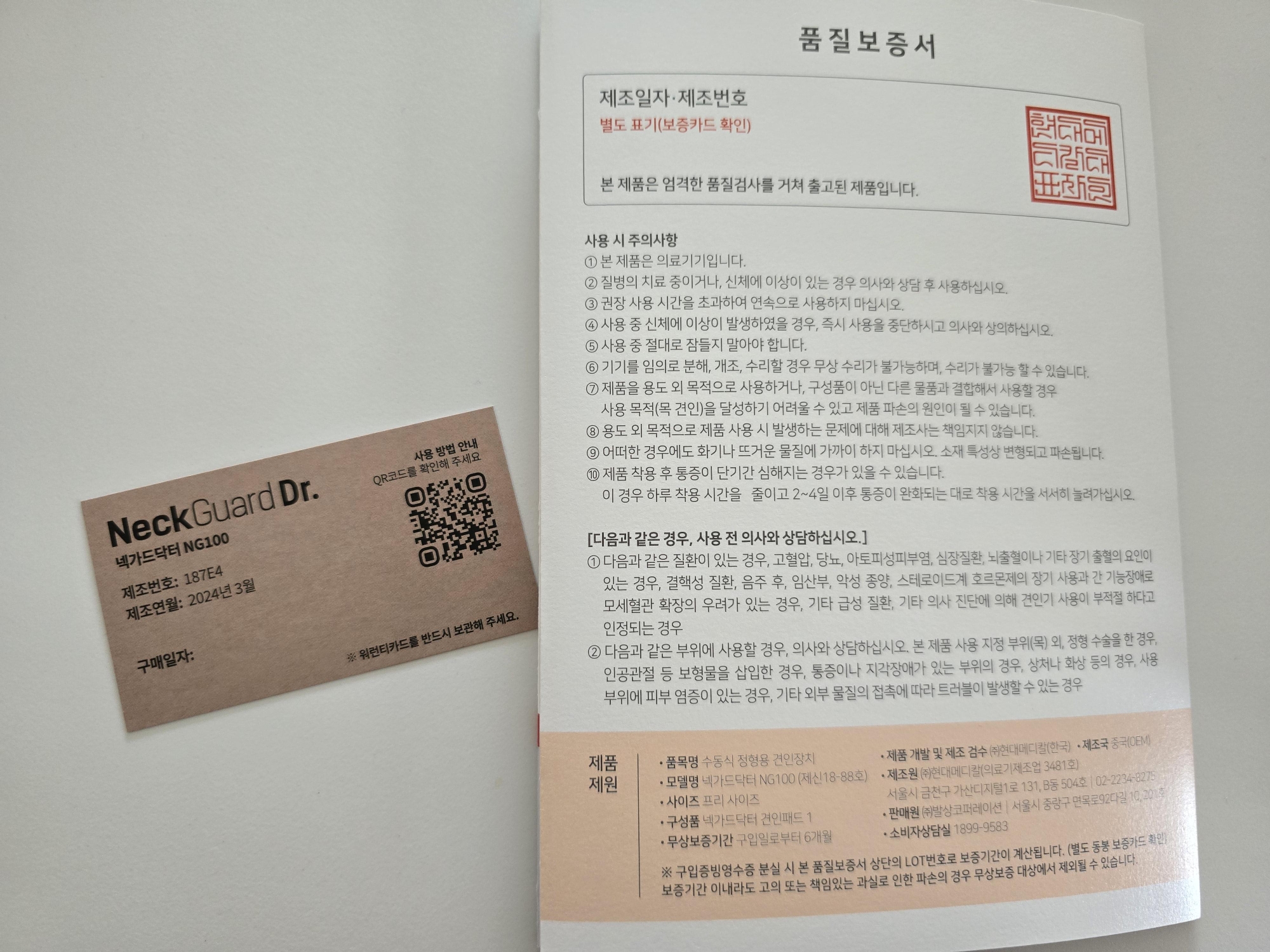 품질보증서도 나중에 필요할 수 있으니 잘 챙겨둡니다
