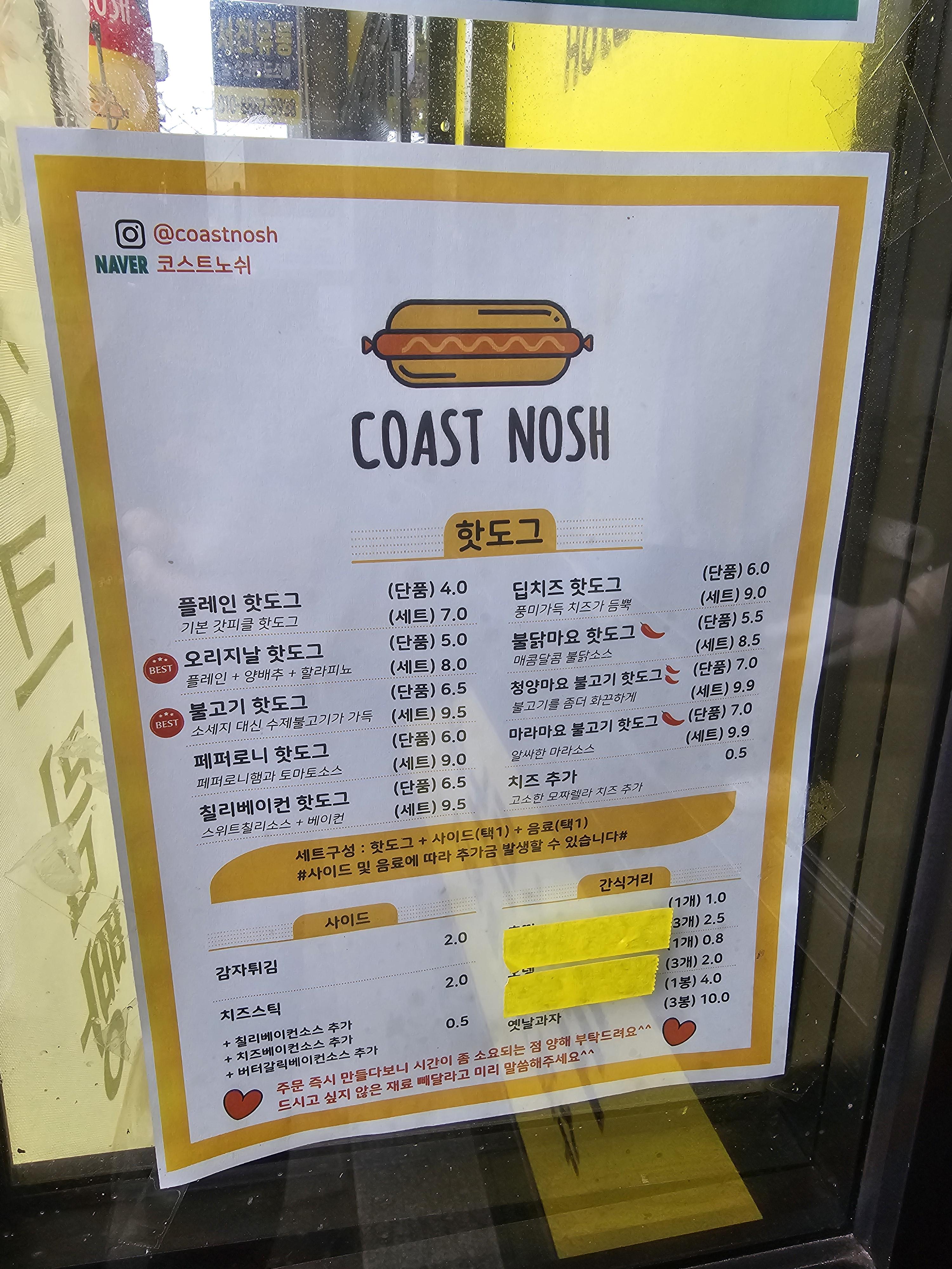 지나가다 예쁜 인테리어에 들른 핫도그 전문점 코스트노쉬