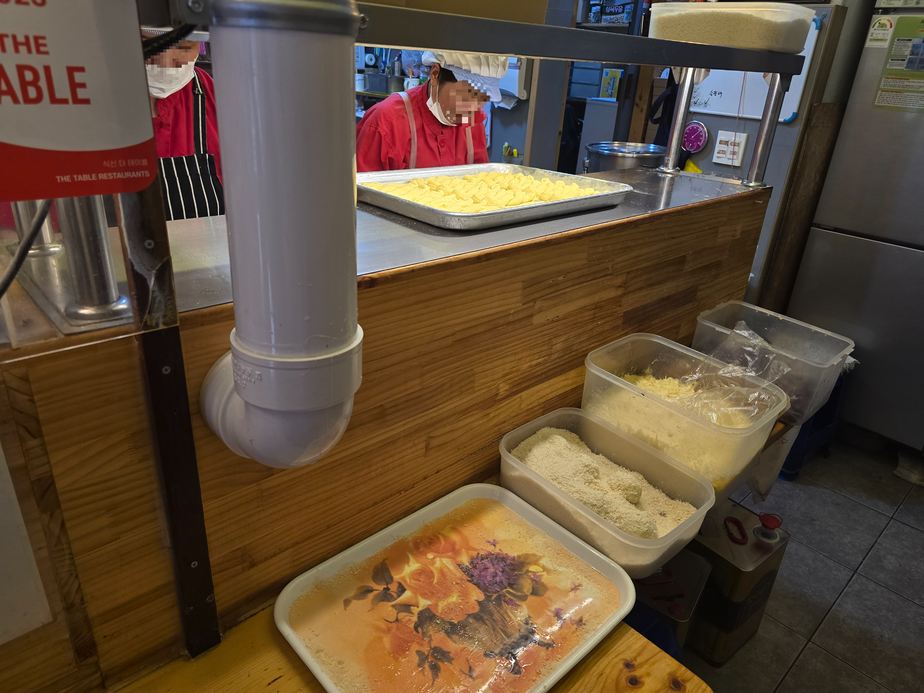 쉴 새 없이 꽈배기를 만드시는 직원들이 보여요