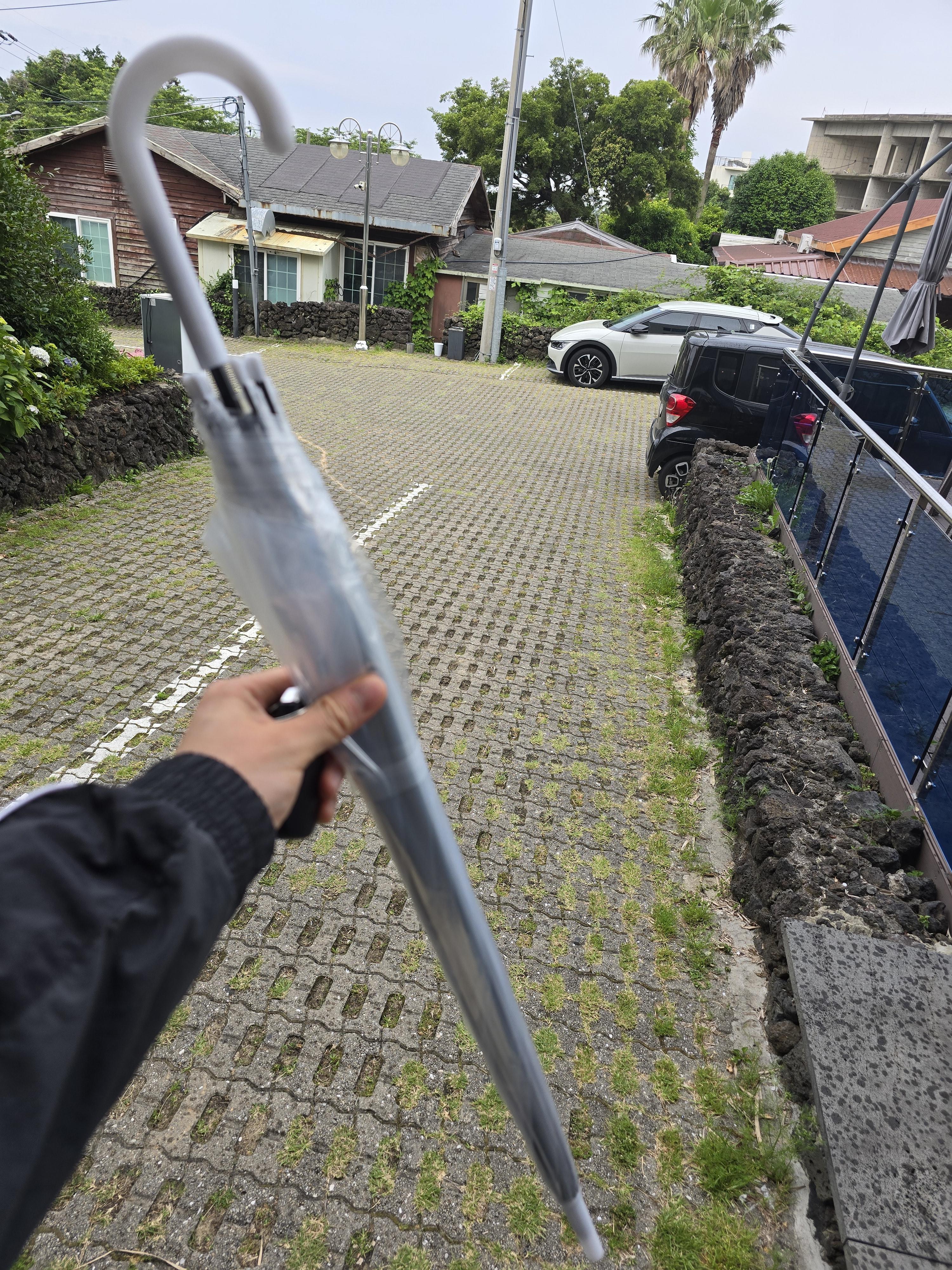 친절하신 직원이 하얀색 우산을 빌려주셨습니다