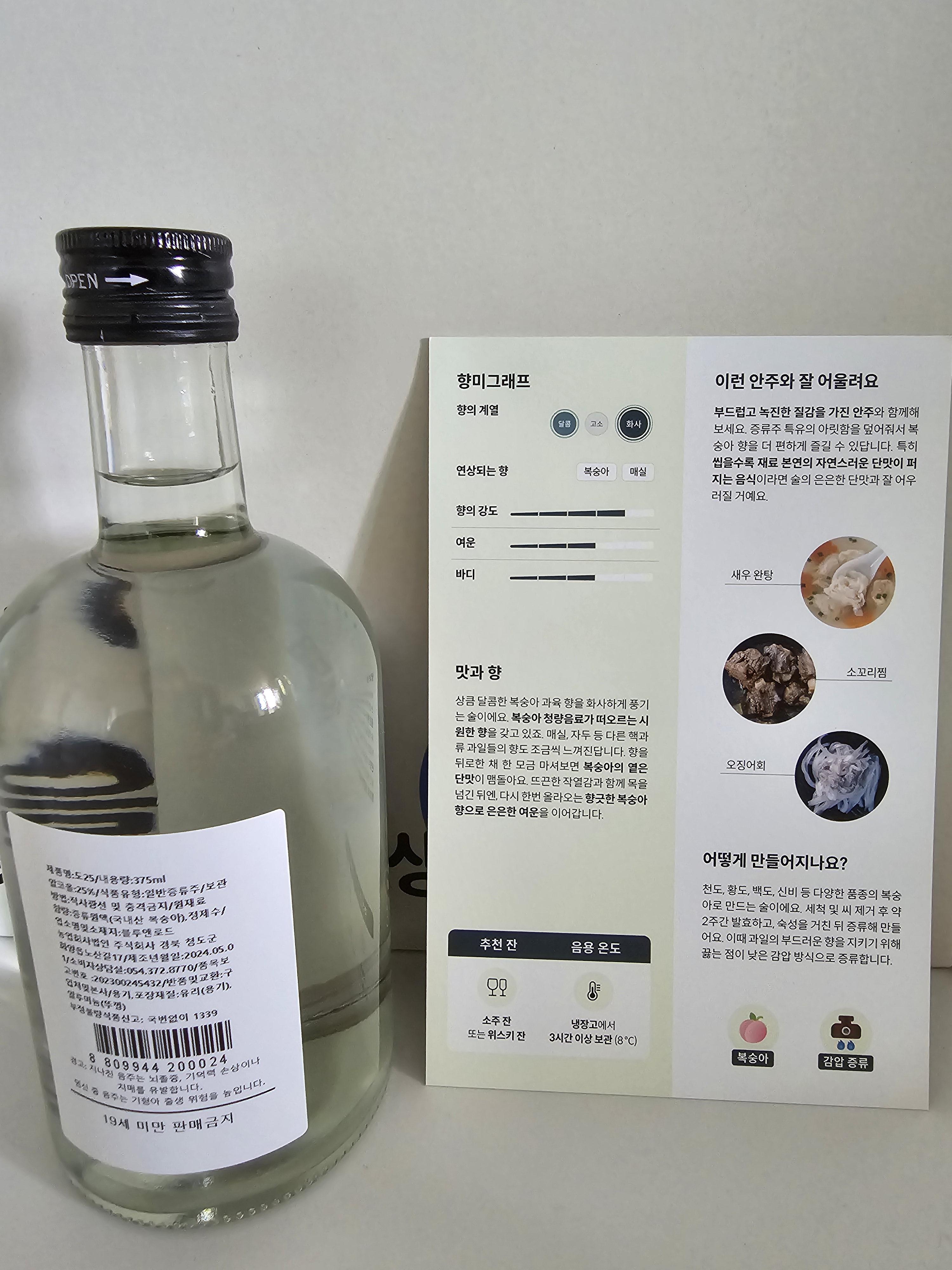 향료와 첨가물이 일절 들어가지 않은 복숭아 증류주