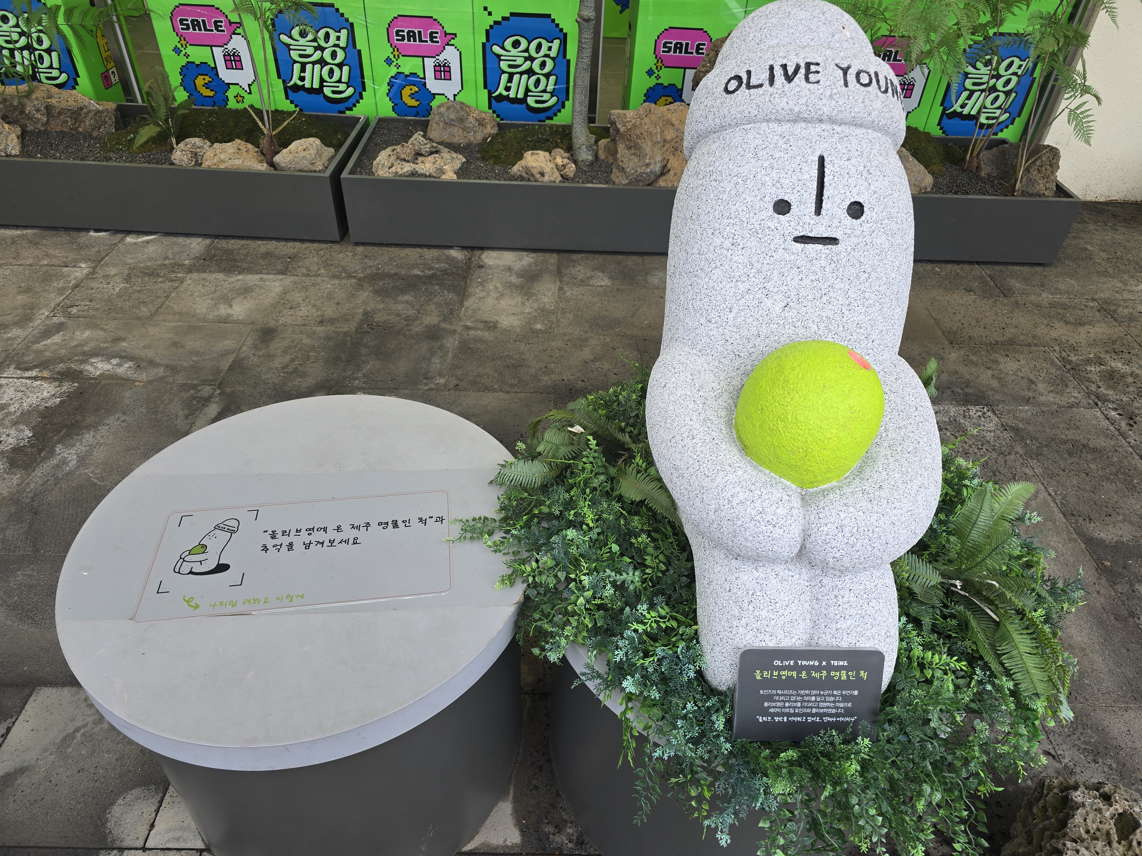 시간이 남아 들른 올리브영 중문점 그곳에 만난 귀여운 캐릭터입니다 약속 시간까지 시간이 좀 비어요살 물품도 있어 방문한 올리브영올리브영에 온 제주 명물인 척을 만났어요 친구와