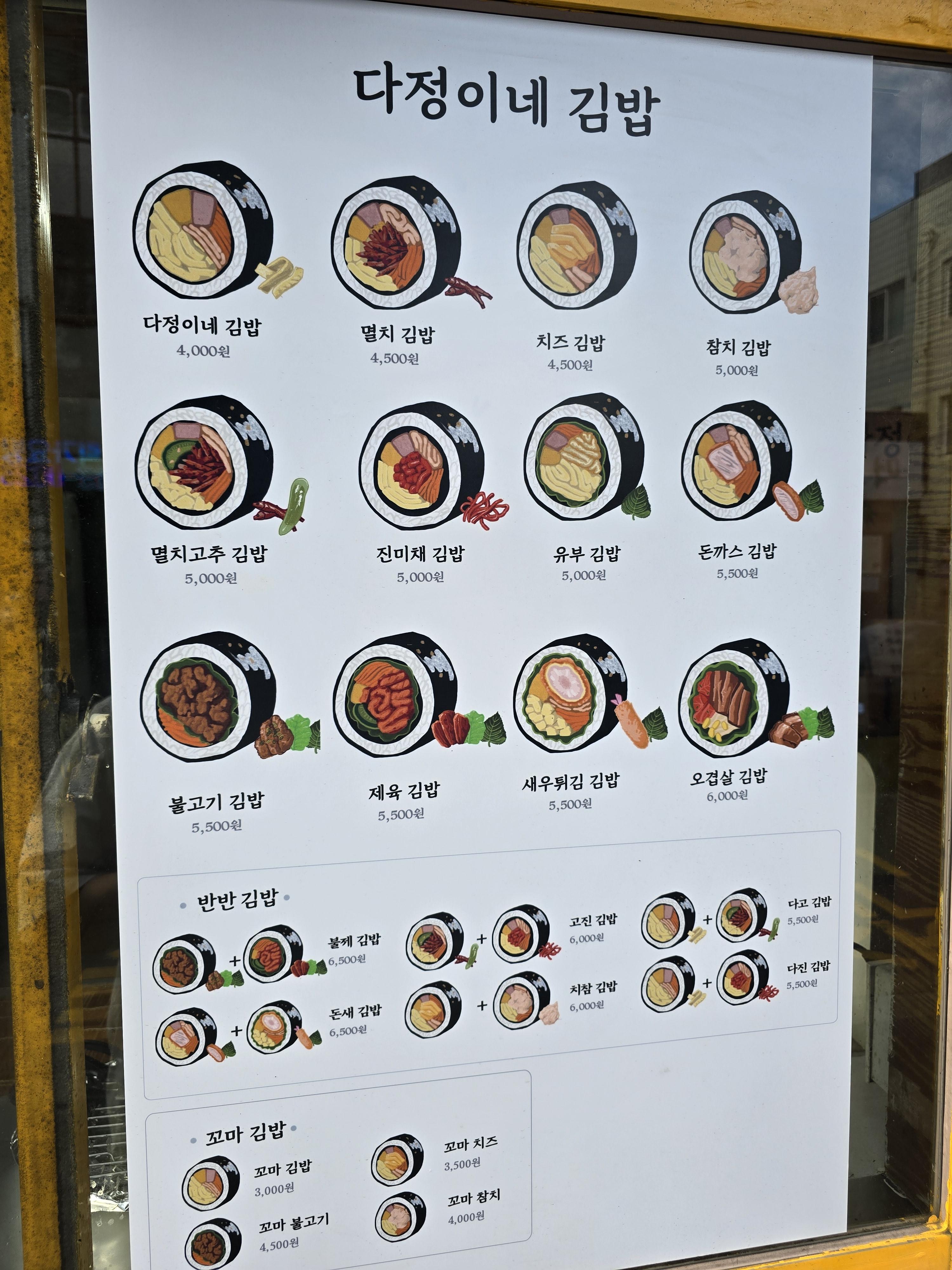 제주도에서 꼭 먹어야 하는 김밥 맛집 중 다정이네 올레시장 본점을 방문했어요 제주도에는 김밥 맛집이 많죠서귀포에 왔으니 다정이네 올레시장 본점에서맛있는 김밥을 포장했습니다