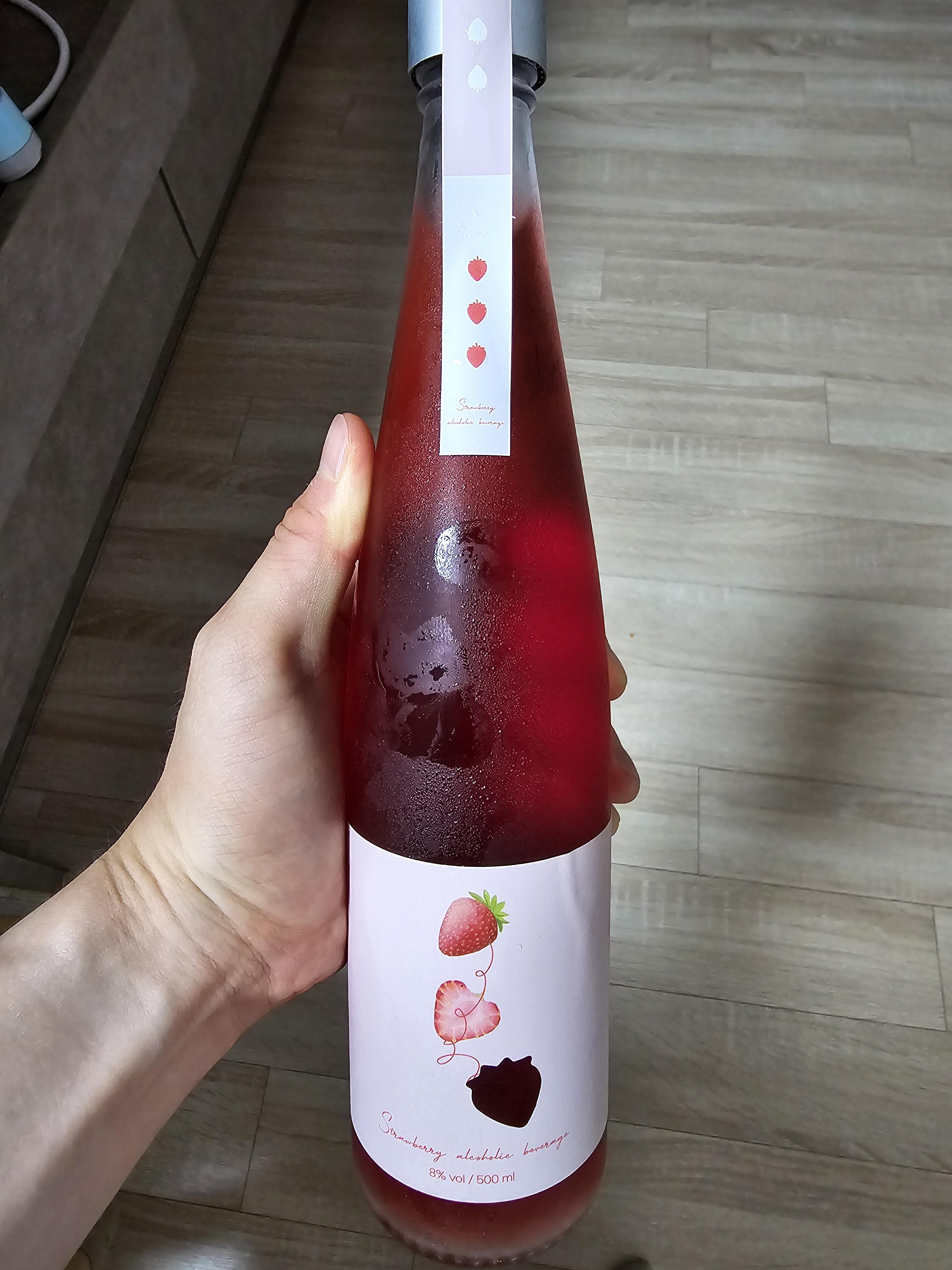 술을 만들기가 정말 어려운데 해낸 딸기와인입니다
