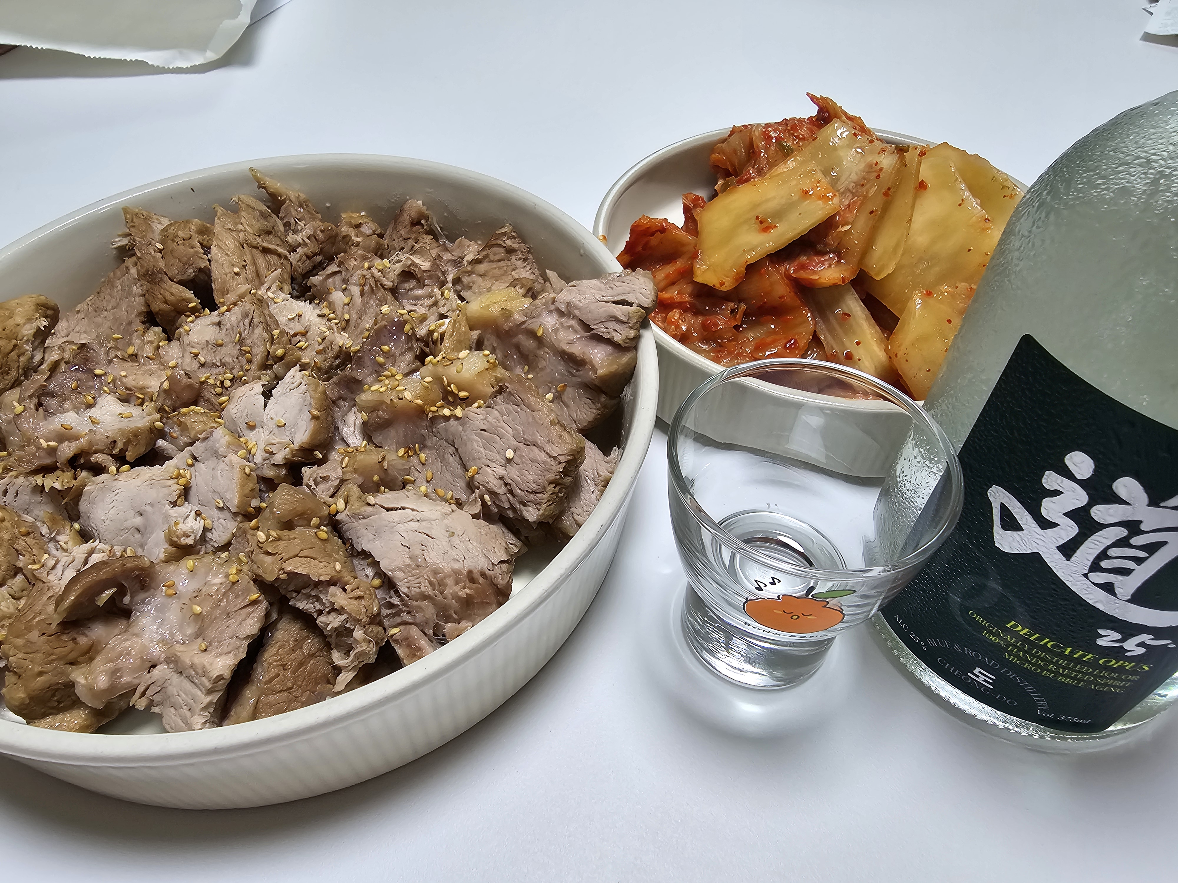 오늘의 술은 도 25%! 수육과 페어링해 먹어봤습니다