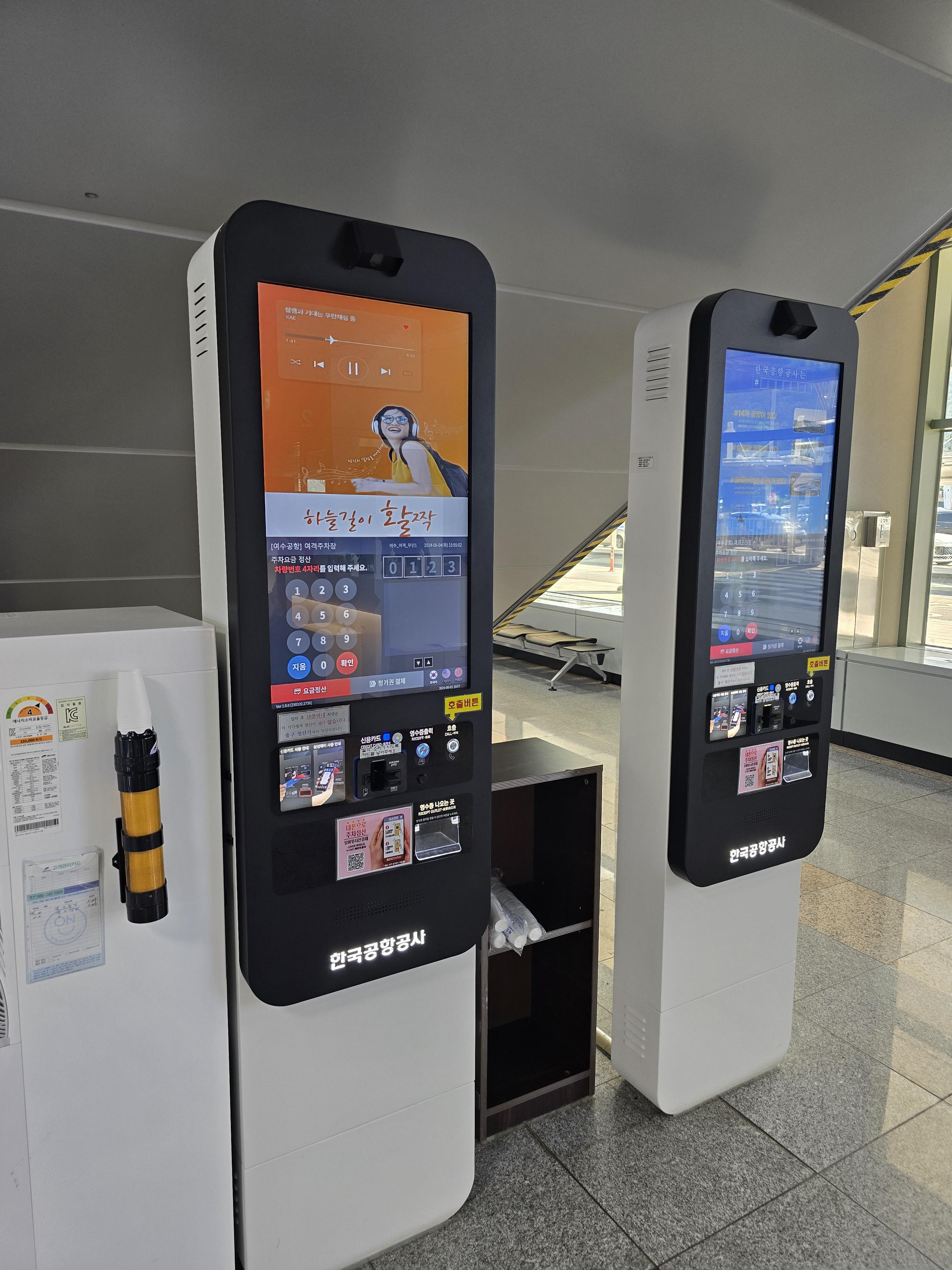 밖으로 나서기 전 여수공항 주차장 사전 정산을 해요
