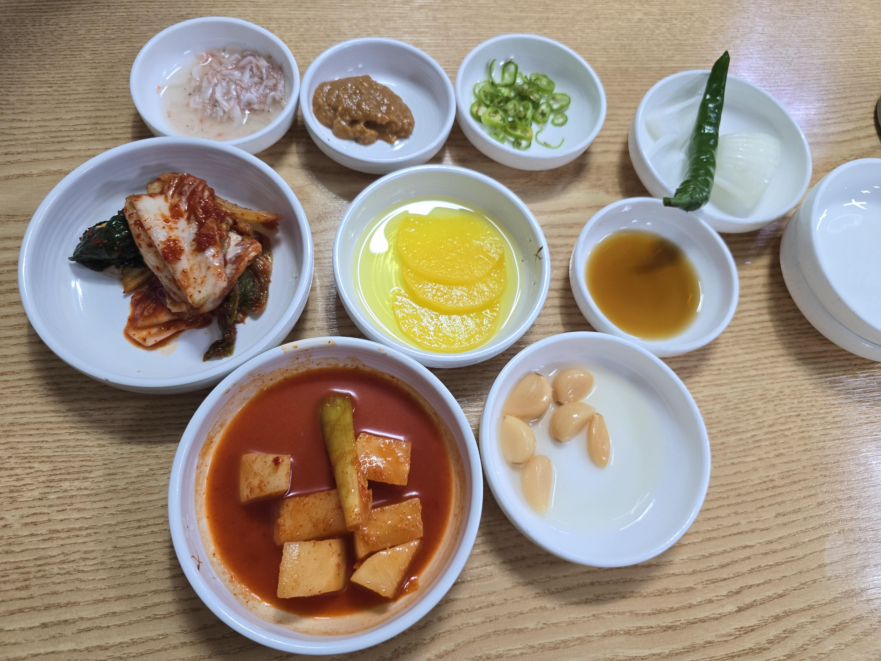 국밥을 주문하다 보니 밑반찬 수가 더 많아졌습니다