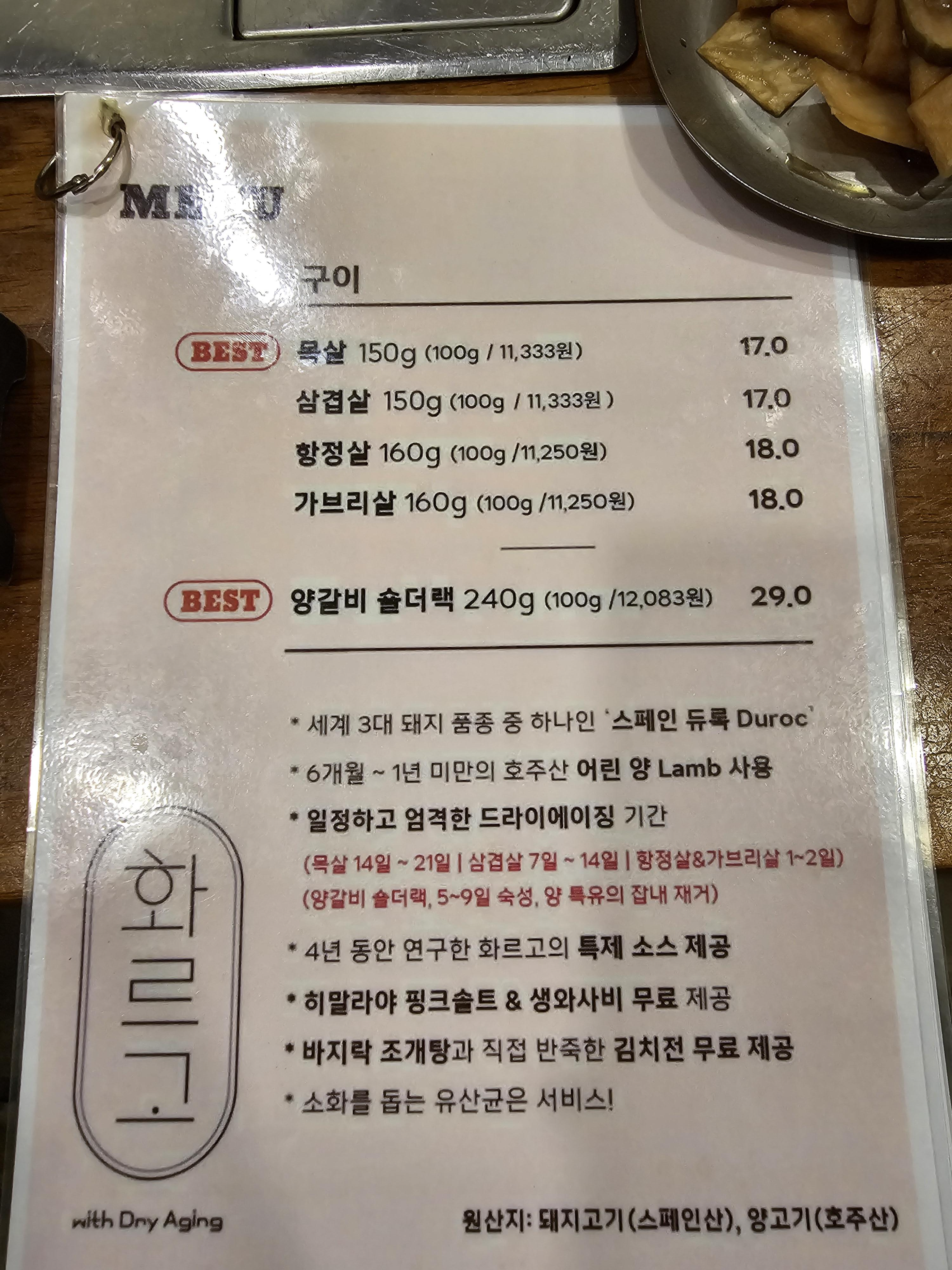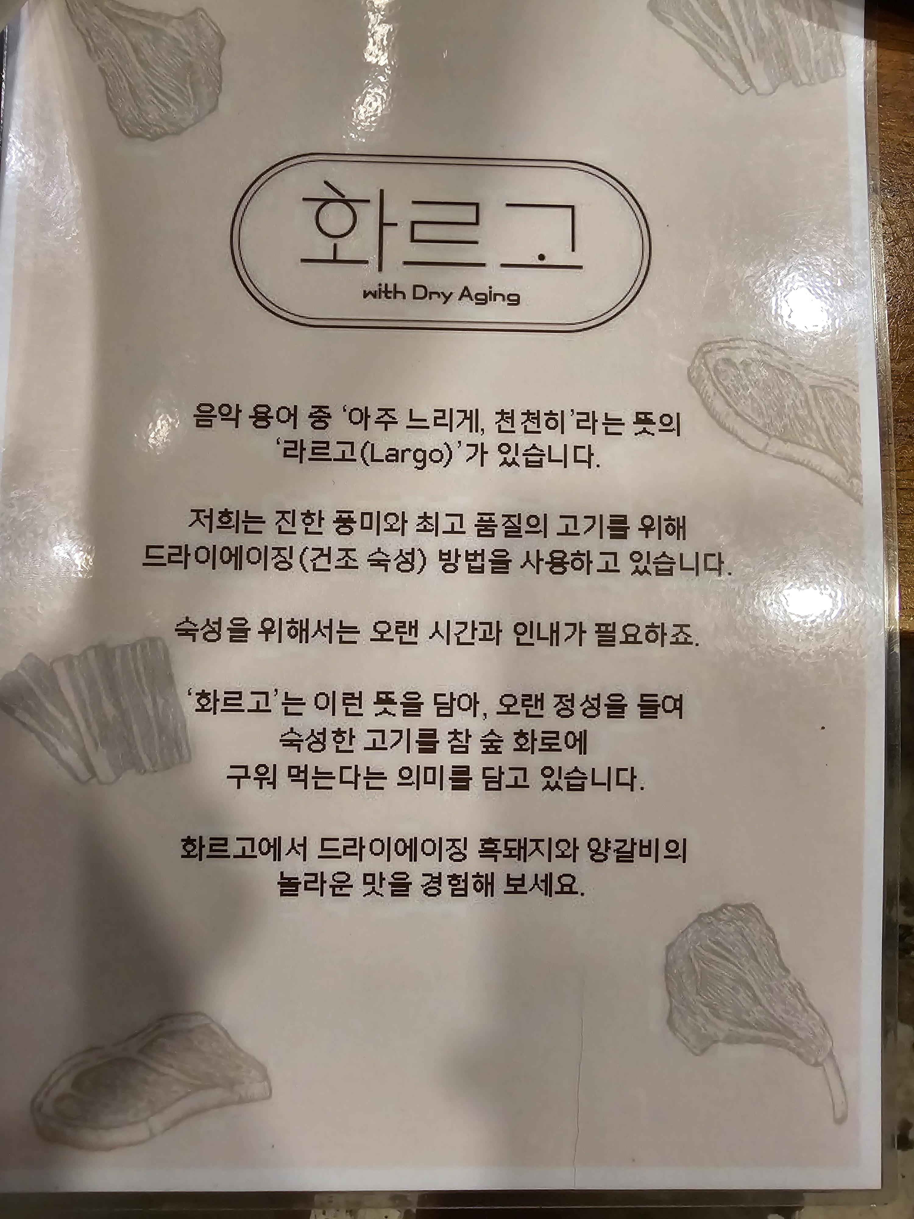 화르고의 뜻이 메뉴판에 적혀있어 읽어봅니다