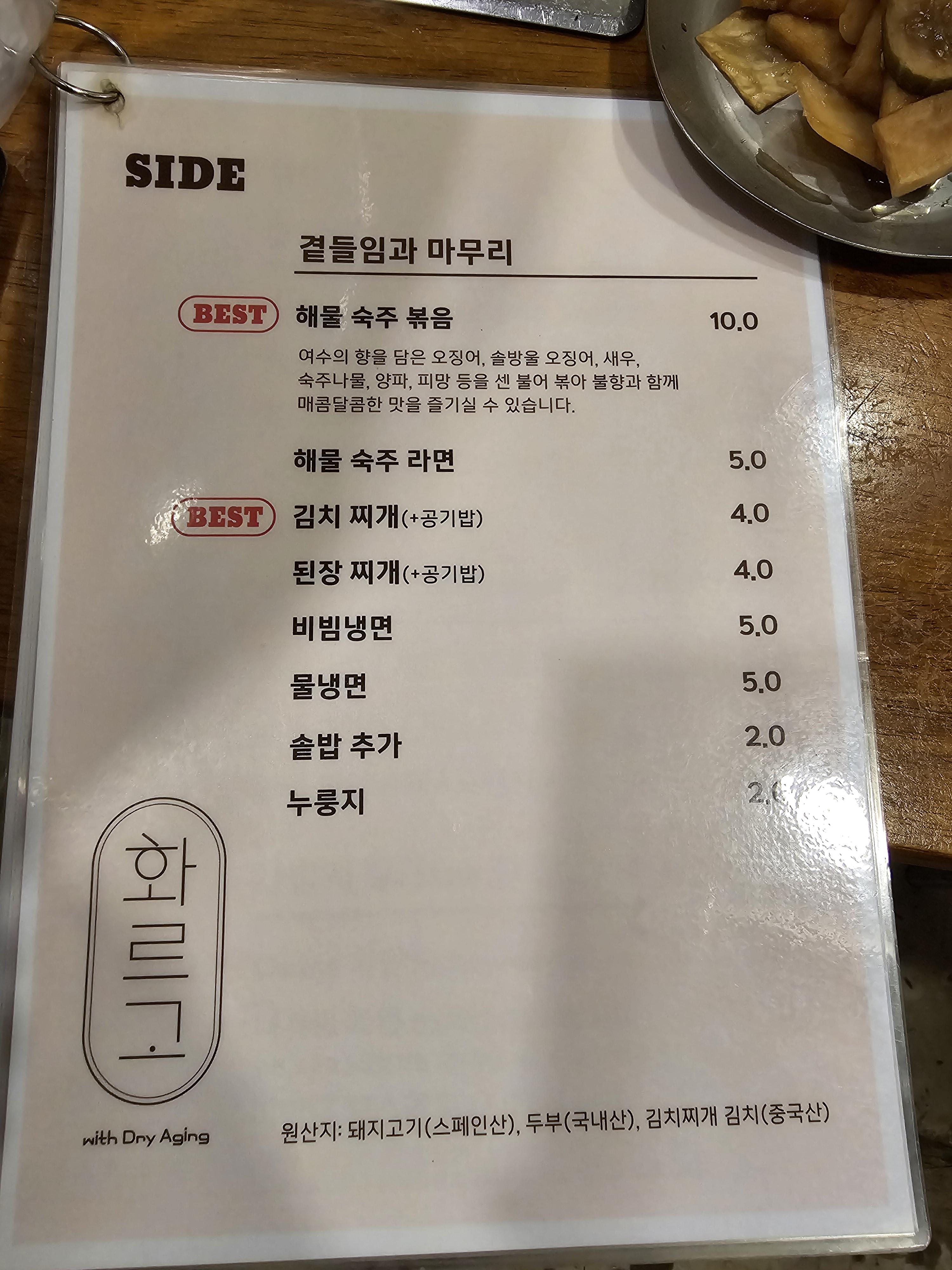 나중에 후식을 먹을 테니 사이드 메뉴도 봐주구요