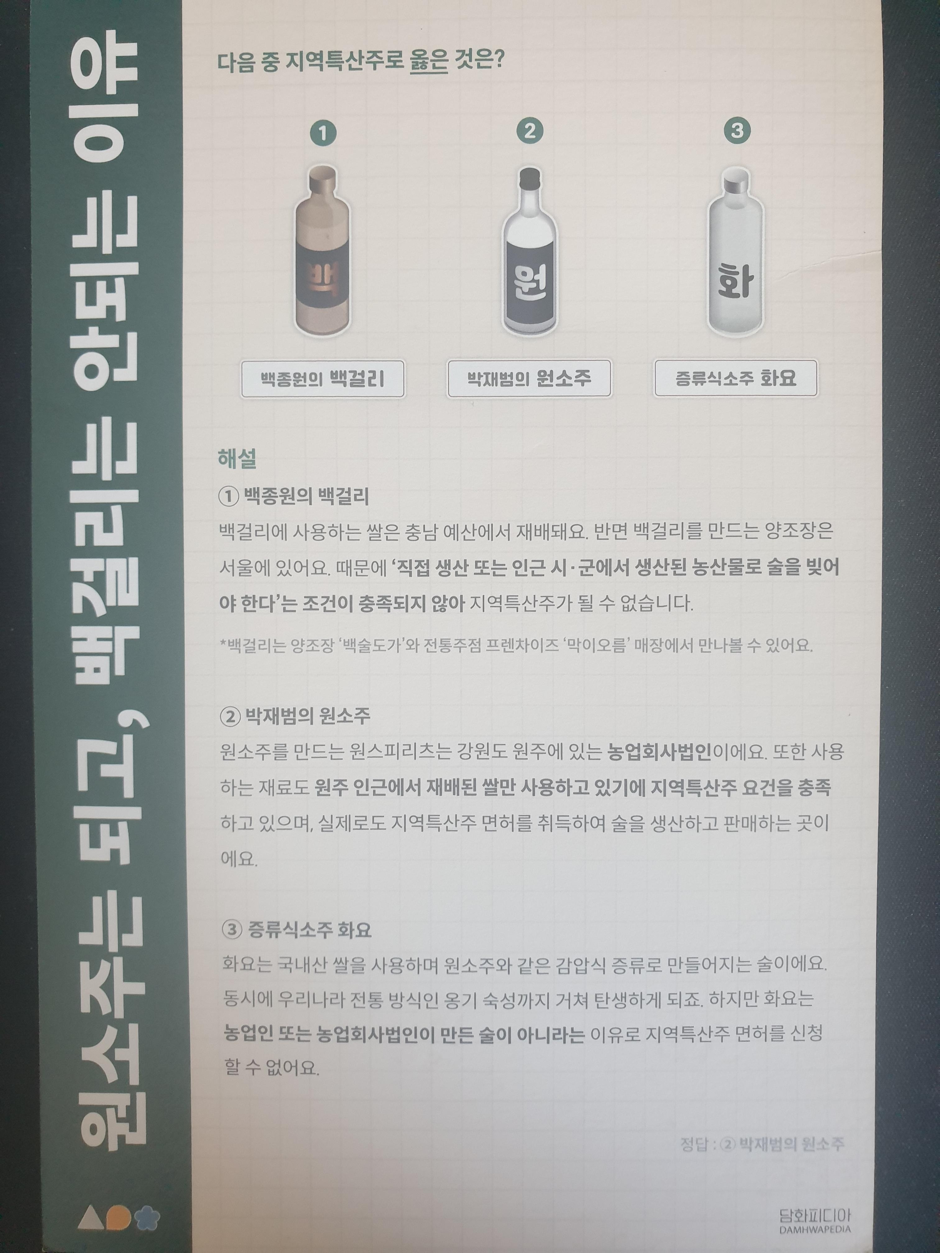 우리 땅 우리의 술이라는 타이틀로 구성되었구
